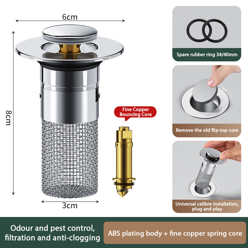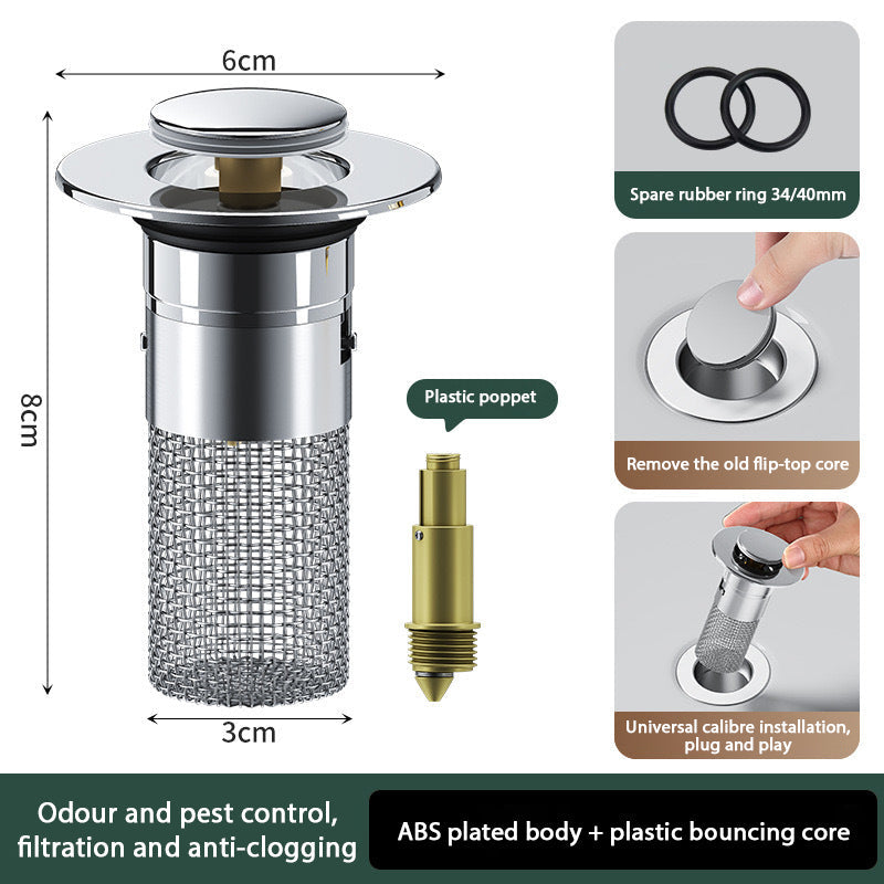 Enkel å installere: Alle kan installere pop-up avløpsfilteret fordi det har en enkel struktur og ikke trenger verktøy. Det er bare å ta ut den gamle avløpspluggen og sette inn poppkjernen.