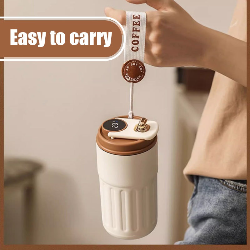 Dette termokruset holder ikke bare kaffen varm og deilig i timevis, men viser også temperaturen på drikken din i sanntid. Det slanke og bærbare designet gjør det perfekt å ha med seg på reise.